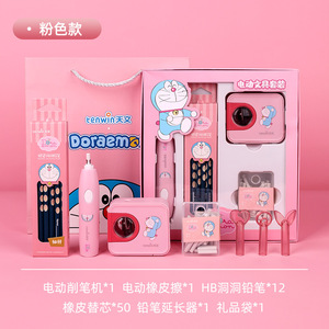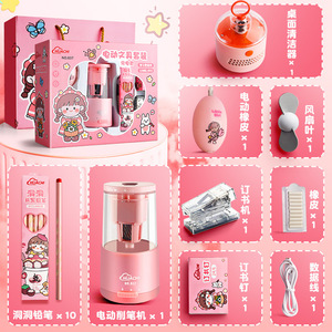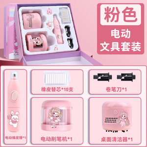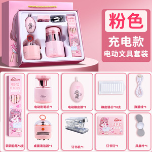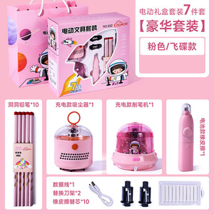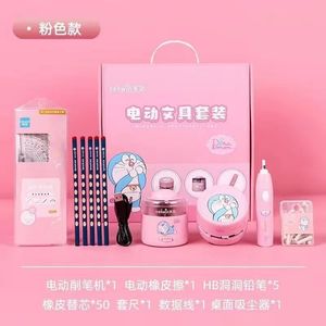 天文学 - ピンクの太さ調整可能な充電式鉛筆削りセット (全自動)