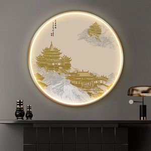 新中国式玄関装飾画卸売り灯画円形ホテル壁画クロスボーダー通路水墨鶴楼背景掛け画