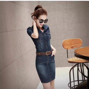 2025 新しいデニムドレススリムフィットヒップミッドレングスデニムスカート + ベルト