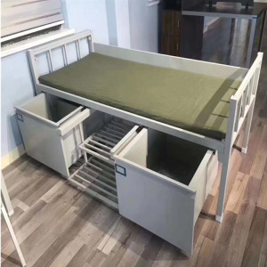 鋼製のシングルベッドのシングルベッドの鉄製ベッドの寮の鉄製ベッドのシンプルな現代的な厚いスチールベッドのロッカー付き
