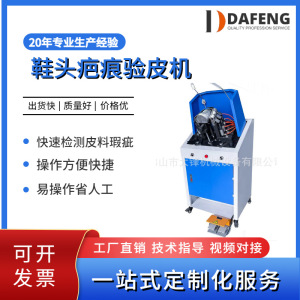 靴の工場の前で機械を支えて前の靴の頭の検査の瑕疵の爪の式の皮の検査機を手伝います。