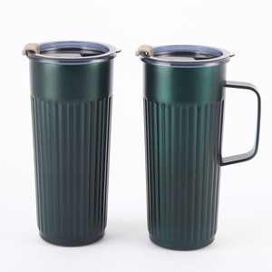 新しい真空ハンドル付き保温カップ304ステンレスシンプルなオフィスカップビジネスカップ蓋付きコーヒーカップ卸売り