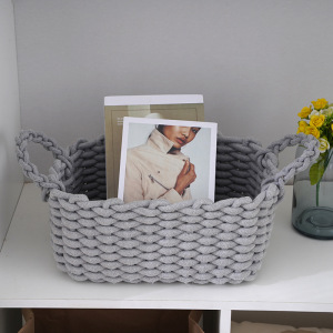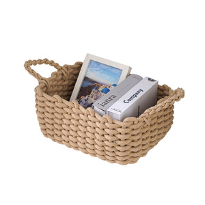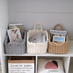 Ins風取っ手編み収納トランペット純色書籍cd粗お下げ綿紐収納バスケット曲線収納バスケット