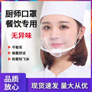 透明な食品衛生用プラスチック製のケータリングマスク、シェフ、レストラン、ミルクティーショップ、笑顔のケータリング、唾液防止マスク