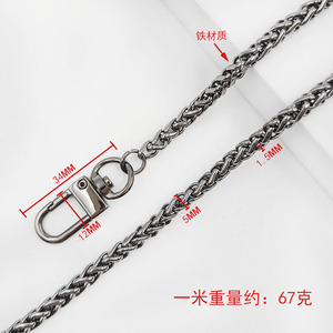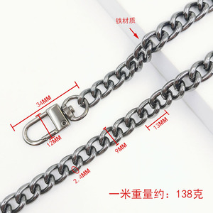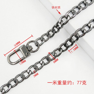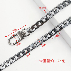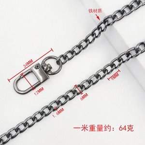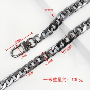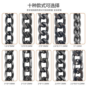1.6x6x9mm ボタンチェーン ドアバックルチェーン ガンカラー 1.0m鉄チェーン