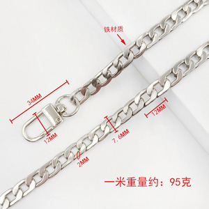 1.8x6x8.5mm 四面ドアバックルチェーン シルバー 1.0m 鉄チェーン