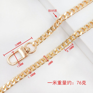 1.8x6x8.5mm 四面ドアバックルチェーン ゴールド 1.0m 鉄チェーン