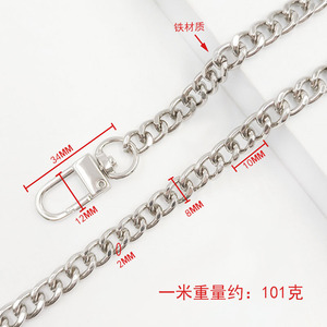 1.6x6x9mm ボタンチェーン ドアバックルチェーン シルバー 1.0m 鉄チェーン