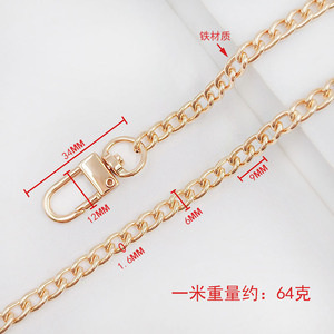 1.6x6x9mm ボタンチェーン ドアバックルチェーン ゴールド 1.0m 鉄チェーン
