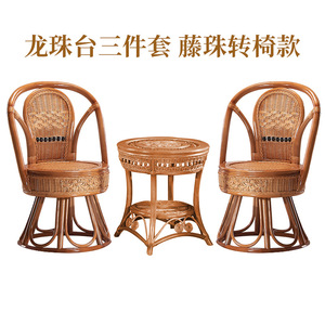 ベランダ竹椅子セット回転椅子背もたれシングル竹編み籐椅子ティーテーブル椅子編み籐椅子3点セット