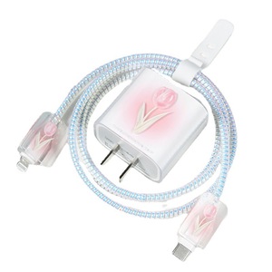 アップル20wピンクチューリップ (データケーブル保護ロープ + データケーブル保護カバー * 2 + 充電ヘッド保護カバー + 収納ボタン)