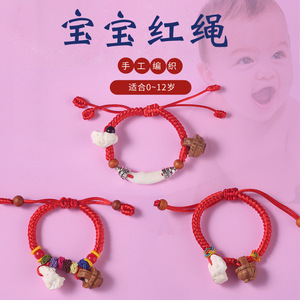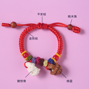 赤ちゃんが桃の核を編む豚の驚きの骨の赤ちゃんの手の縄の男の子の女の子の子供の手の金剛の結び目の赤い縄のブレスレットの卸売り