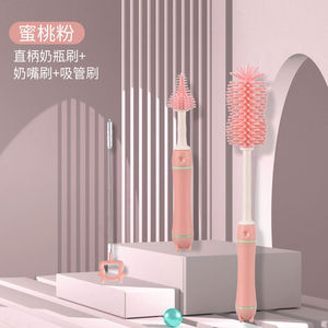 ベビー専用シリコンミルクボトルブラシ三色长柄洗浄ブラシセット360度回転洗浄ミルクボトルブラシセット