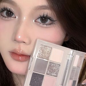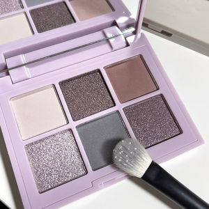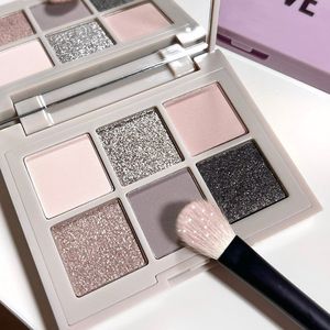 ハローxoxo甘くてクールな六色の手のひらの皿の灰色の紫のアイシャドーの皿の真珠の光のつや消しの大地の学生の女性の携帯用の小皿