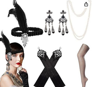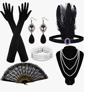 ギャツビー1920s独身パーティーレトロ羽毛ヘアバンドセット頭飾りネックレス手袋タバコロッドクロスボーダー