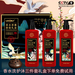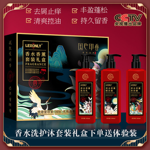 国色印香洗護沐浴三点セットの爽やかな除屑コントロールオイルのふわふわシャンプーリンス入浴剤セット