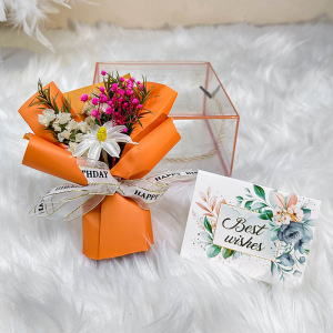 七夕のロマンチックな永遠の花は祝日の贈り物の花束を束ねます。