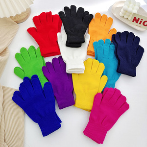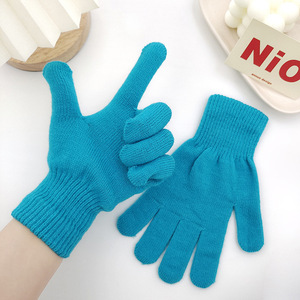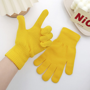 キャンディー色のニット手袋男女通用成人純色全包分指手袋現代シンプル風保温手袋