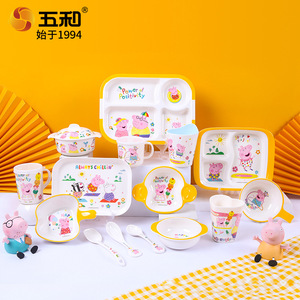 子豚のページの食品級のメラミンの子供の食器の補助食の碗は格の子供の食事の皿の漫画のコップの碗を分けてかわいいです。