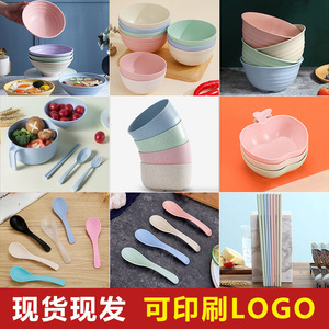 小麦わら食器家庭用子供ご飯スープ碗セット転倒防止プラスチック碗泡碗プレゼント印logo