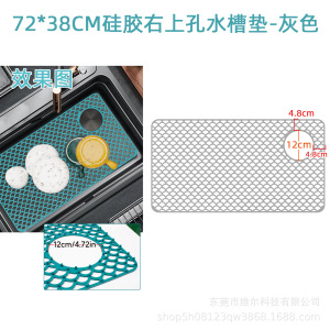 72×38cm 中上穴大型シンクマット グレー(袋)