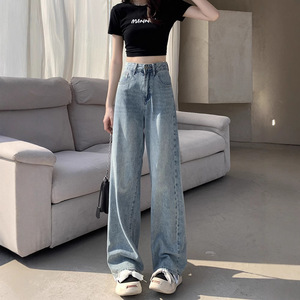 2025年に流行した人気のある明るいストレートジーンズの女性は、ゆったりとした垂れ下がった感じがして、背が高くて、足を伸ばしてズボンを引きずる