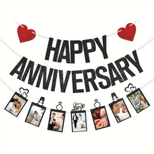 Happyアニバーサリーバナー結婚記念日のテーマは、銀色の玉ねぎの写真のバナーを引っ張る