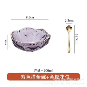 紫描金碗 + 描金ガラス皿 + 桜スプーン