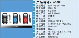 4インチ6インチ668ワイヤレスポータブルBluetoothスピーカー、カード挿入可能、ミニポータブル、スクエアダンス用低音スピーカー、Bluetooth5.0