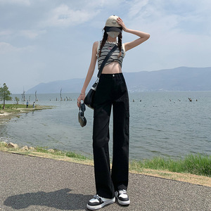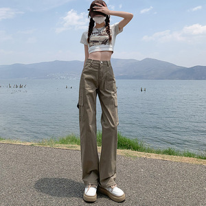 アメリカンハイストリートストレートレッグオーバーオール女性用2025春秋新作ハイウエストルーズ痩身カジュアルワイドレッグフロアレングスパンツ
