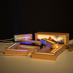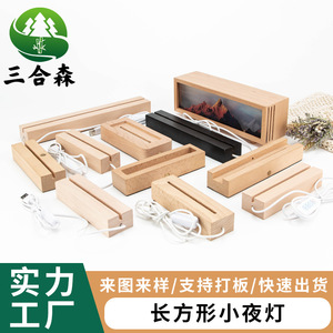 通用长方形实木发光底座卧室榉木发光底座现代简约木质灯工艺品