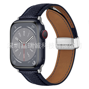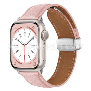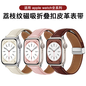 Apple Watch第1~11世代/Ultra3/SE3対応 ライチ柄折りたたみ式マグネットバックル時計バンド
