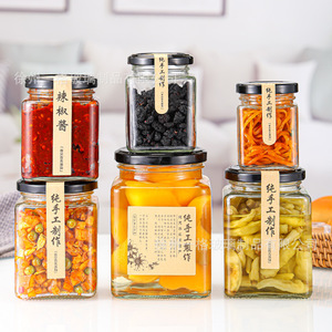 現物四方ガラス瓶漬物蜂蜜カプサイソースジャム密封缶腐乳膏滋空瓶蓋アマゾン