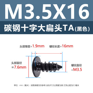 メーカー直売鉄黒色十字溝大平頭タッピングねじta傘頭ねじキノコ頭延長ねじ