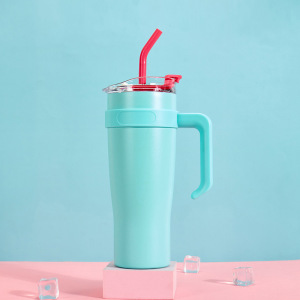 クロスボーダーのネットの赤い新型のストローの氷の覇の杯の40オンスの大容量のステンレスの保温の杯の携帯の自動車の杯の卸売り