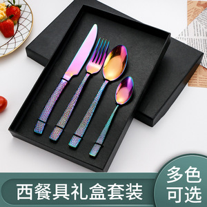 クロスボーダー水立方430ステンレス厚手ナイフフォークスプーンセット洋食ナイフ角柄ハンマーポイントホテル洋食食器