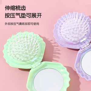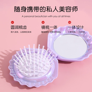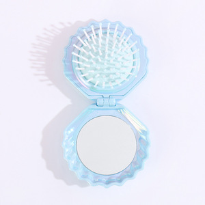 新型パール光沢折りたたみ貝殻鏡梳、七色電気メッキパール光沢鏡梳、携帯用旅行用コンパクト2in1コーム