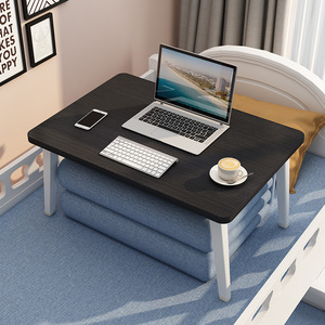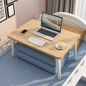 ベッドの上に小さな机を折って机を畳んで寮の学生が寝室に座っている家庭の子供たちが字を書くことを学びました