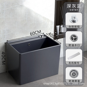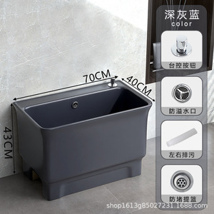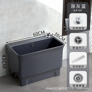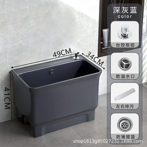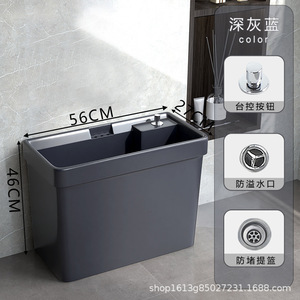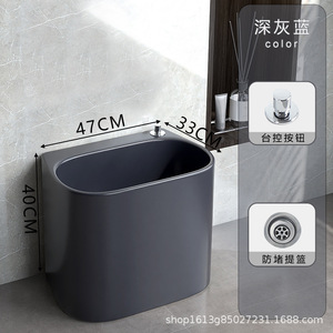 北欧深灰青モップ池家庭用カラー陶磁器モップ池床置き式レトロ大サイズ洗濯モップ溝トランペット