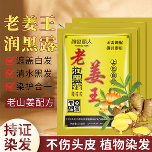 姜王さんは泡染め剤を袋に入れて洗うと、白髪の家庭用植物の試作品で髪を染めます。