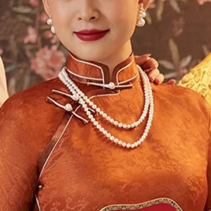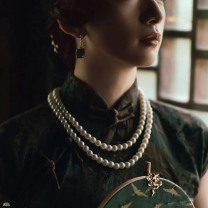 小さな香りのガラス真珠のネックレス女性の優雅な気質のお母さんの鎖の骨の鎖の2層の簡単な組み合わせの復古の首の鎖