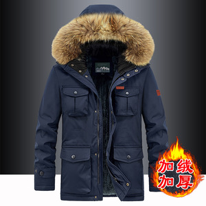 加绒棉衣男中长款工装棉服多口袋宽松大码加厚保暖防风防寒棉袄子