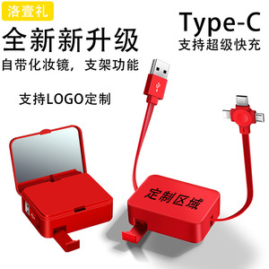 化粧鏡スタンドを持って伸縮して三合一のデータケーブルを収納します。