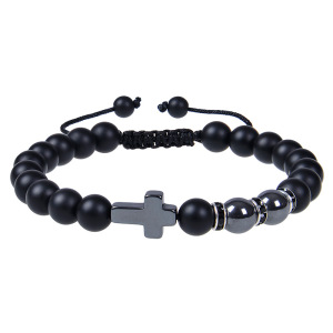 Amazon热い贩売8mm黒磁石カードブレスレット黒つや消し石编みブレスレット祭りプレゼント手饰り