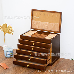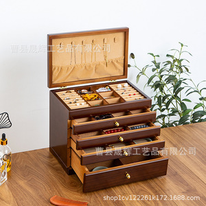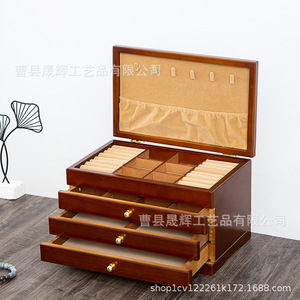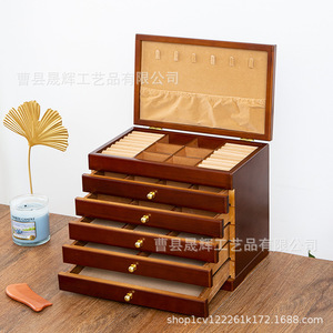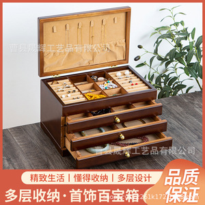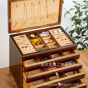 多層木製レトロ仕切りフックネックレスジュエリーボックス蓋付き収納ボックス木製防塵イヤリングジュエリーボックス