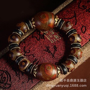 チベット九目天珠ブレスレット三九目龍模様瑪瑙仏ビーズブレスレット男性と女性のためのドロップシッピング