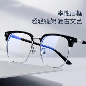 泰酷辛黒武士のごろつきのハンサムな斯文理工の半枠の近視のメガネの男性の高級感はやせていることを現して青い光のメガネの枠を防ぎます。