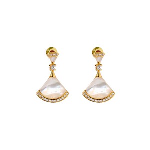 ライブで人気沸騰中の重厚感あふれる精巧な銅製本金メッキジュエリー、天然瑪瑙と螺鈿の扇形鎖骨ネックレスとイヤリングのセット