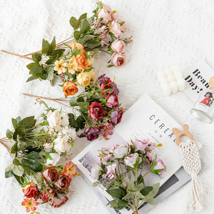 ザクロのバラの花珠の串、バラの造花の花束、インテリア、造花、シミュレーションローズ、シルクフラワー、装飾花