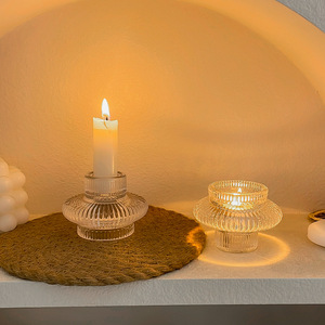 小紋空飛ぶ円盤-二重用水晶ガラス燭台